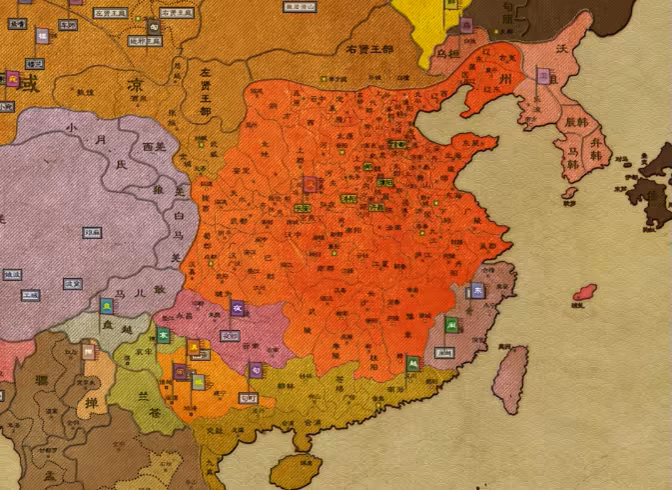 地图充分考虑了江河山川分布和州郡【省、府】的边界。每一个城市都有所属的郡和州,郡有郡治(主城),州有州治(省会)。占领了郡治才可以征收郡内的矿产,占领了州治才能有效征收州内赋税。有城廓的城市,只有城门可以进出部队,城门的性质相当于关口。在城市界面可以选择城门的防御模式。如重点防御某个门,或者平均防御。系统会根据防御方针,在执行时调配各个城门的兵力。