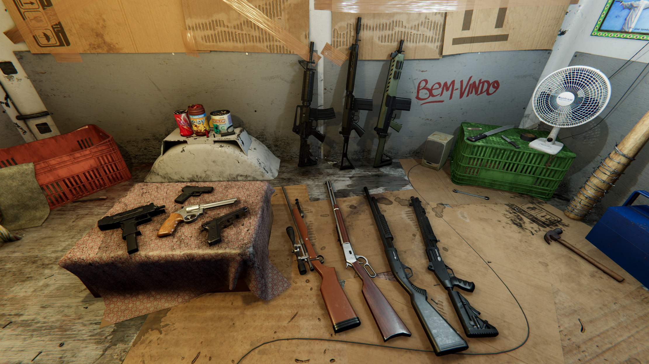 Buy weapons illegally and customize them with new parts and paint jobs, all through an immersive van owned by a somewhat patriotic dealer.