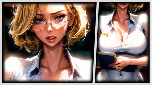 The temptress mentor. Elegant, decadent, and sharp-tongued—she teaches cinema and literature with a glass of wine in hand and seduction in her smile.