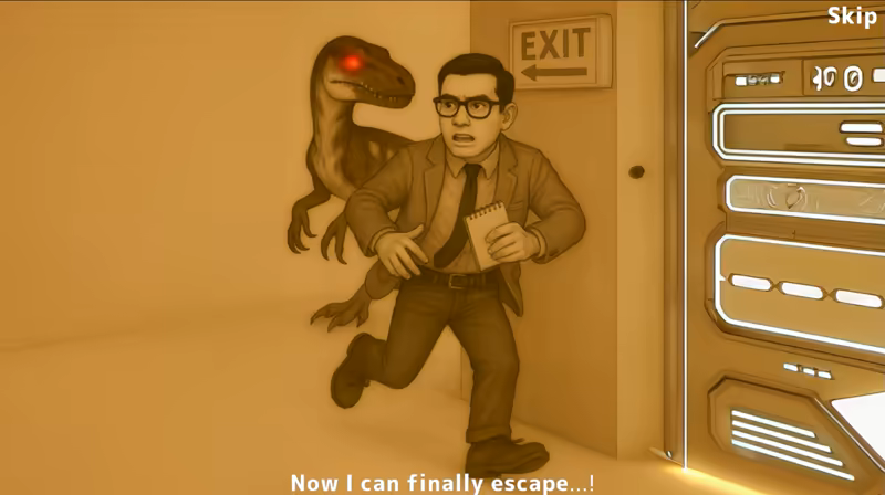This is a 3D dinosaur horror game where you have to collect multiple materials to escape while being chased by a tracker in a laboratory.