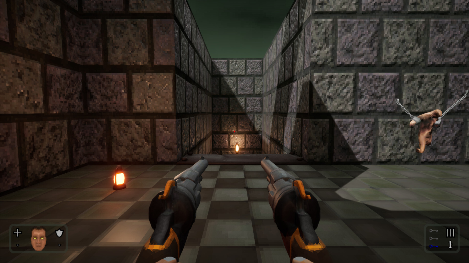The gameplay is focused on (per-level) shooting, exploring areas and discovering secrets. You don't have global progression or explicit story. This game is heavily focused on environmental storytelling and level design.