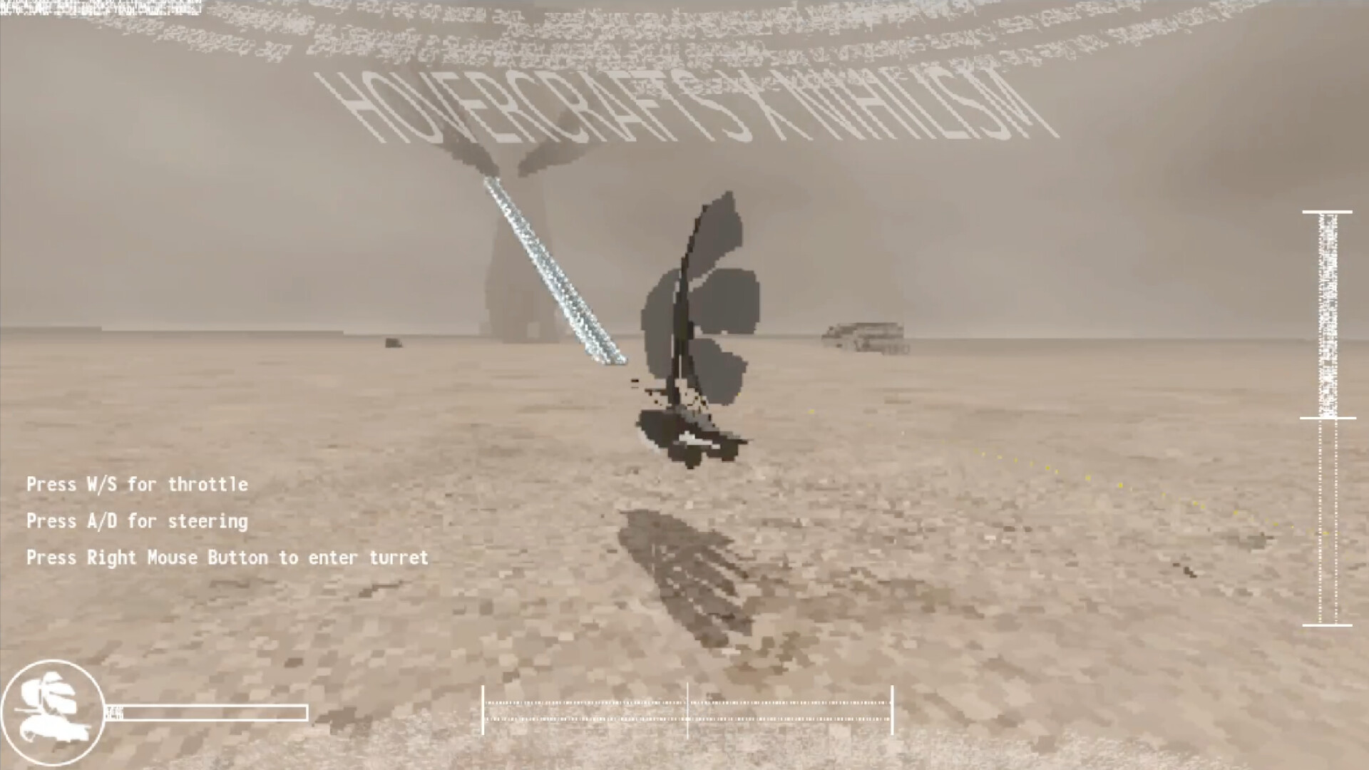 A reason to feel important: We were promised tales of a great journey, of the ultimate battle between good and evil. As kids, we were told that maybe we weren't the heroes of the tales, but at least it was out there somewhere right? Maybe by piloting the hovercraft against them you can feel whole again, like you are not just a speck of sand drifting in this world.