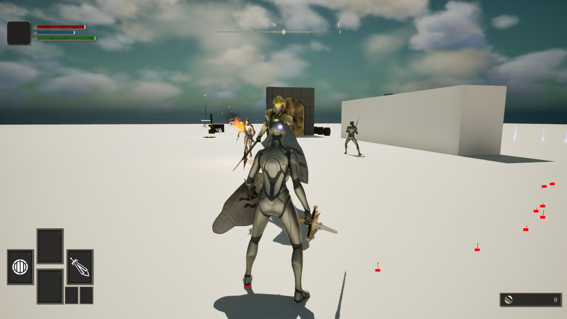 Precise stamina-based combat focused on dodging, parrying, and striking.