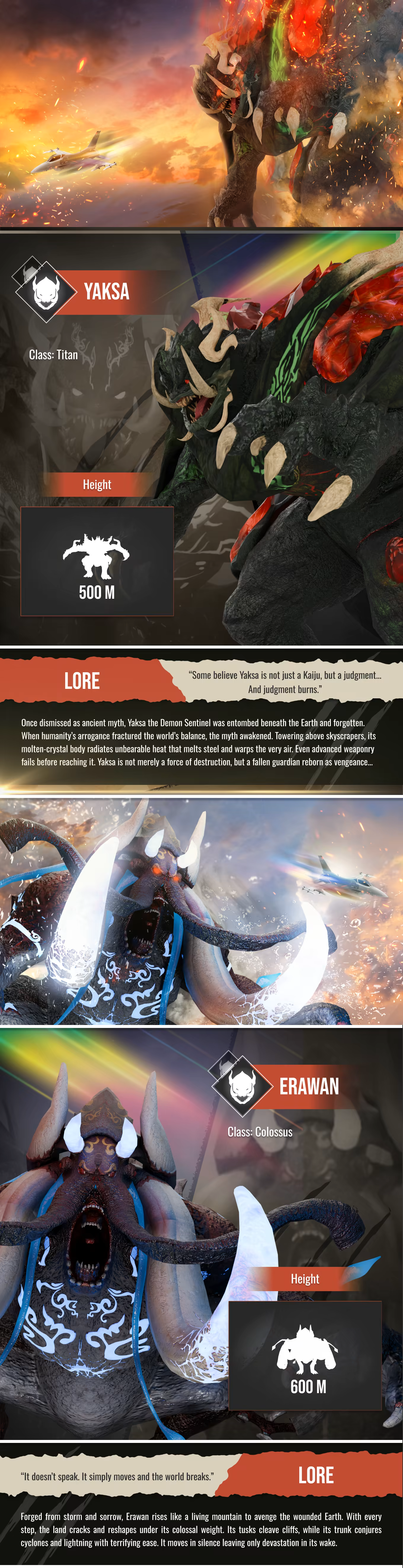 "Extinction Core is based on PvE intense boss battles, and each Kaiju is a key character in the gameplay's design principles. Bosses have unique patterns, each challenging players and playstyles in different ways. More Kaiju means more gameplay, more levels, and more tactical decisions."