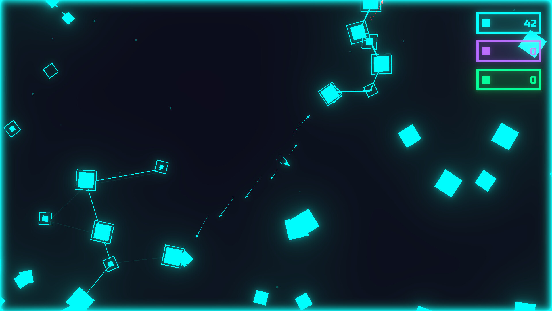 Collect squares that spawn around the map by destroying them using your upgrades.